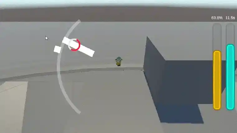 The gameplay is once again based on an action of constant pulling, but I restricted the playable angle from 360° to a much smaller slice and used an overlay UI to visualize which angle the player was pulling and needed to pull. In fact, the overlay UI was the only part I did for the initial version of this.